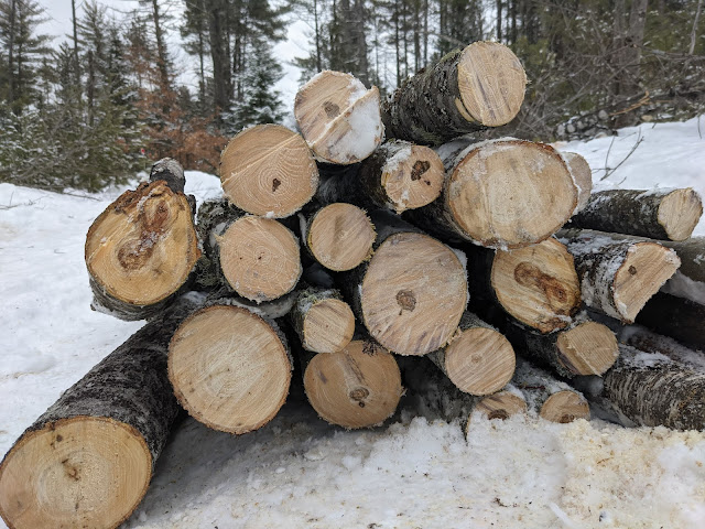 Today I decided to do something different... I've mostly been working in the house lately, trying to organize, declutter and decorate. I still have a long ways to go with that, but I also want to be making progress on outdoor projects. So today I fired up the chainsaw and did a couple hours of clearing. I took down a couple dozen saplings and small trees. Lol, in the picture you can't really tell what I accomplished, but I am beat!!! 😂 I think it was working in the snow that really did me in. There's maybe 6-8 inches on the ground, and it's like walking through loose sand on a beach.